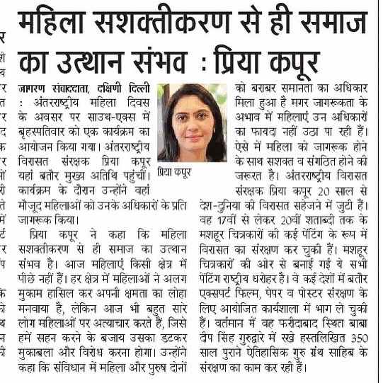 Ms. Priya Kapoor is the Founder Director of International Heritage Conservation and a distinguished art conservator specializing in the preservation of organic materials. She pursued PhD in Storage Design and Preservation of Organic Artifacts in Tropical Climates and an MA in Conservation & Restoration of Works of Art from the National Museum Institute, New Delhi, along with a Gold Medal in BFA (Sculpture) from the Government College of Art, Chandigarh.
